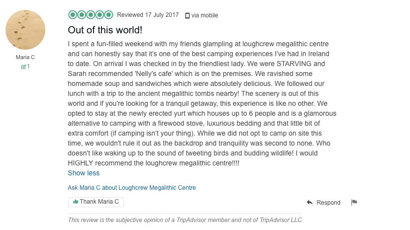 We are uniquely located at the Loughcrew Cairns which is the highest point in the Boyne Valley but also just a few minutes from County Cavan and County Westmeath. This means there are so many things to do nearby and within an hour of our centre. Some of the most popular things to do and visit include; The Loughcrew Cairns, Tayto Park, Fore Abbey, Loughcrew Fairy Trail, Hill of Tara, Mullaghmeen Forest, Cavan Kayak Centre, Navan Adventure Centre, Newgrange, Lough Lene, Trim Castle and Cavan County Museum. To find out more about things to do while staying at Loughcrew CLICK HERE